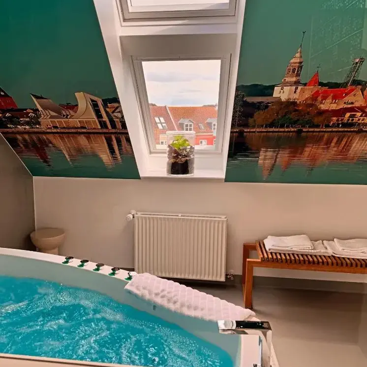 Weitere Informationen zu Hyggeligt hjem i AalborgMortens Kro Boutique Hotel bietet eine einzigartige Unterkunft mit moderner Ausstattung und zentraler Lage in Aalborg. Das Hotel verfügt über verschiedene Dienstleistungen wie Restaurant, Bar und Zimmerservice sowie kostenlose Flughafentransfers. Die Zimmer sind mit einer Tee- und Kaffeemaschine ausgestattet und bieten genügend Platz für einen angenehmen Aufenthalt.